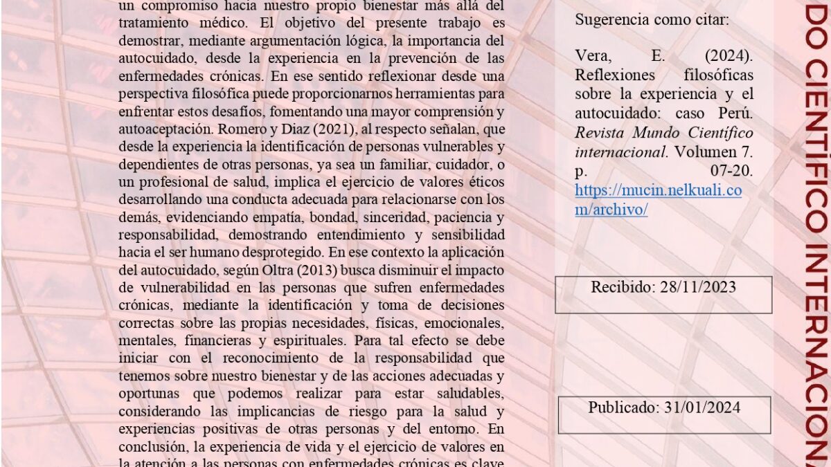 Reflexiones filosóficas sobre la experiencia y el autocuidado: caso Perú.