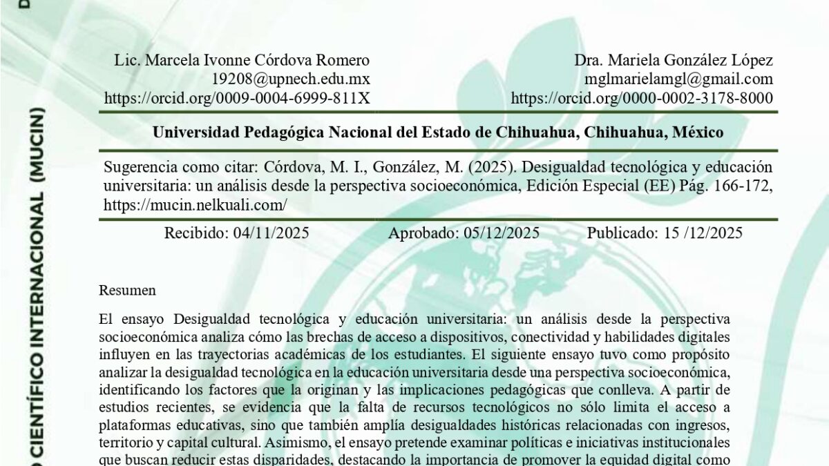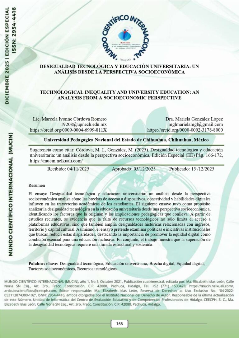 DESIGUALDAD TECNOLÓGICA Y EDUCACIÓN UNIVERSITARIA: UN ANÁLISIS DESDE LA PERSPECTIVA SOCIOECONÓMICA